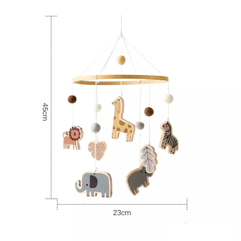 Móbile de Berço de Madeira Animais com Sino para Bebês é perfeito para criar um ambiente tranquilo e acolhedor para o bebê. Com um design delicado e seguro, este móbile auxilia no desenvolvimento visual e auditivo dos pequenos.