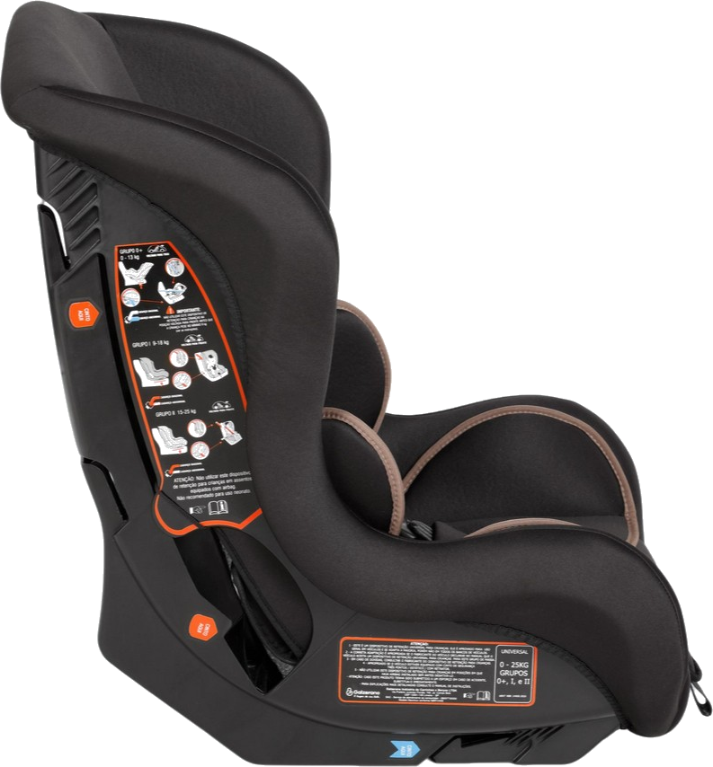 Norma ABNT NBR 14.400 — padrão brasileiro obrigatório de dispositivos de retenção infantil. Aprovada em testes de impacto.